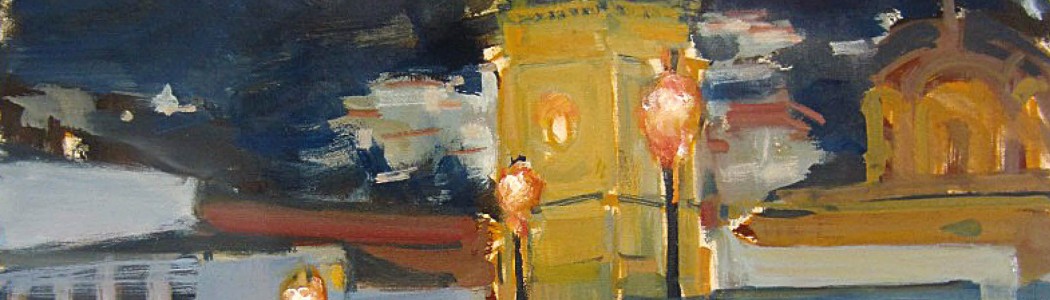Gassoumis’ daughter, Athena recalls “My father always likes a creative challenge; I remember the day he told me he was going to paint with a minimal palette to see if he could capture the light. The colors he chose are Prussian blue, yellow ochre, Venetian red and white. He says it’s about moving the paint and capturing the light…”