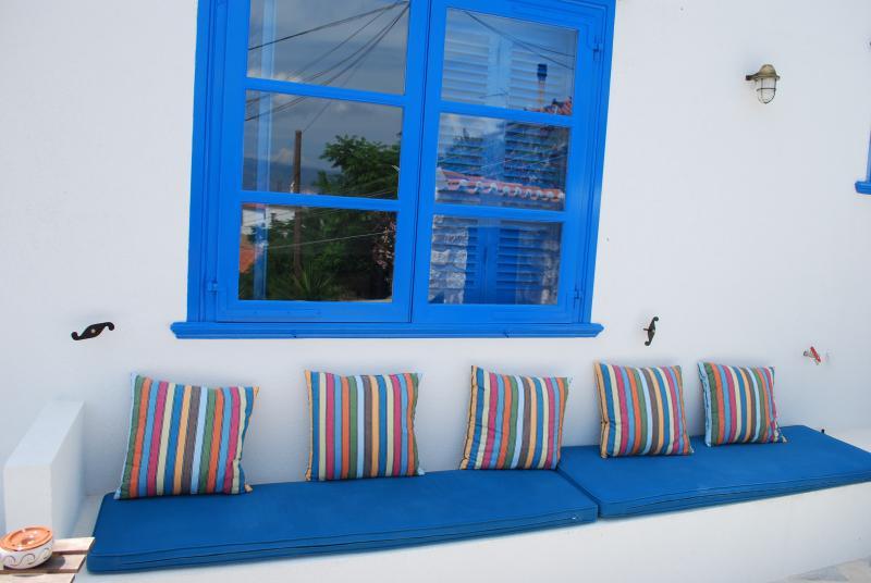 This traditional Greek house has 3 bedrooms (2 double beds and 2 single beds) and 2 bathrooms. Also two other people can sleep on the sofa. Refurbished in 2011, the house is 70 m² with living room, a fully equipped kitchen, a beautiful terrace with views of the sea, and a garden at the back with a mountain view. There is also a shower in the garden. Kamini visitors will appreciate the silence and the sound of nature as no vehicles (cars and motorcycles) are allowed in the island of Hydra.