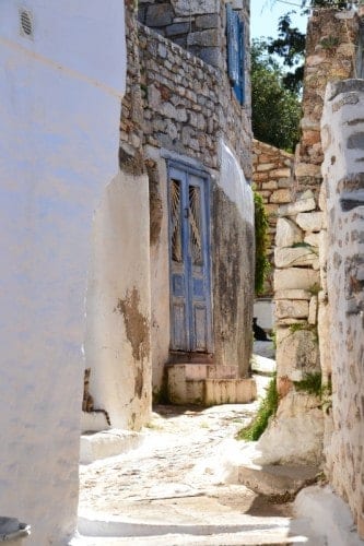 Kiafa, the original permanent settlement in Hydra, is built up high into the hills above Hydra Town. As Hydra grew in size and prosperity, and as the dangers posed by marauding pirates receded, the settlement expanded beyond its fortified boundaries, drifting down the hill toward the harbor, Kala Pigadia, and Kamini. Today, Kiafa is a charming blend of narrow, meandering cobblestone alleys and stairways, high-walled houses, crumbling ruins, and spectacular views over Hydra Town and Harbor and across the Saronic Gulf to the Peloponnese. Kiafa is entirely residential and has no restaurants, cafes, or bars. The walk to the homes in the neighborhood can entail many, many steps, and so are not suitable for those with mobility issues. The climb can take anywhere from ten to fifteen minutes for the average person.