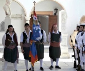 The lavish six-day celebration includes tours of the island’s museums, exhibitions, screenings, lectures, book presentations, and sporting events. On the last day, a thanksgiving and a memorial service are held at the Cathedral, after which a wreath is laid at Admiral Kondouriotis’s statue and tomb.
