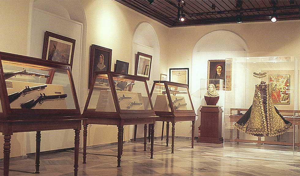 Covering two floors, the museum displays, among other items, firearms, weapons, and artifacts from the Greek Revolution, Balkan Wars, and World Wars I and II, eighteenth- and nineteenth-century heirlooms, marine maps and nautical equipment, traditional dress and folk costumes, the figureheads of ships, and, perhaps somewhat ghoulishly, the embalmed heart of Admiral Andreas Miaoulis, Hydriot hero of the 1821 revolution. Lining the walls of the first floor and staircase are paintings by Greek and European artists.