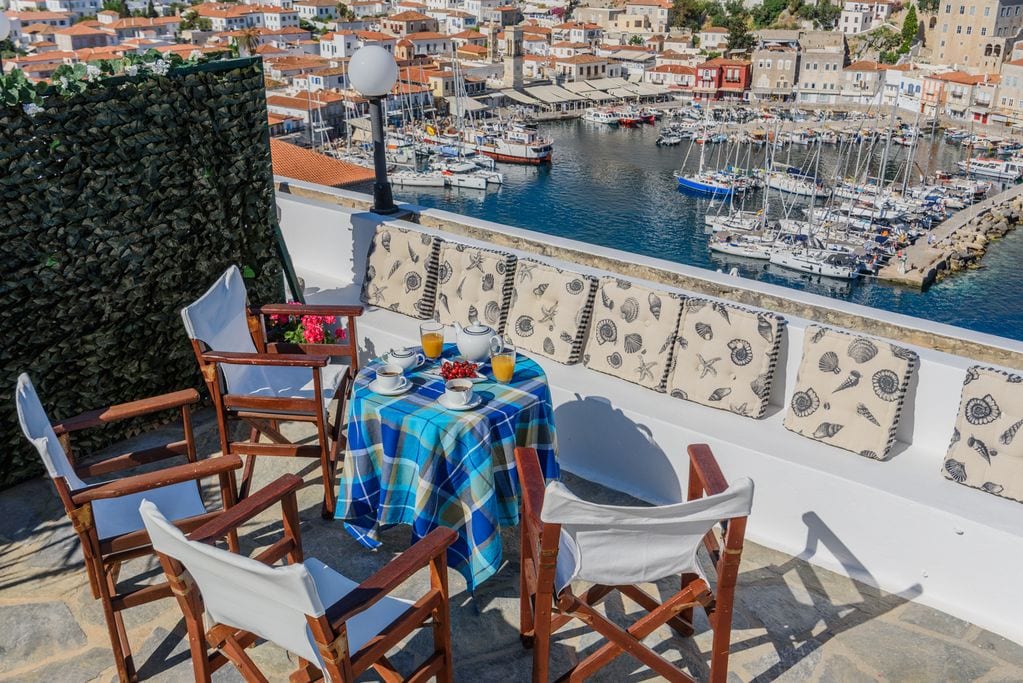 Neokosmidis apartment 1 shares a huge terrace with the smallest apartment, the studio (there is a separator in the middle of the terrace so you do not get disturbed ) from where you have a spectacular view all over the island and over the Peloponnesos.