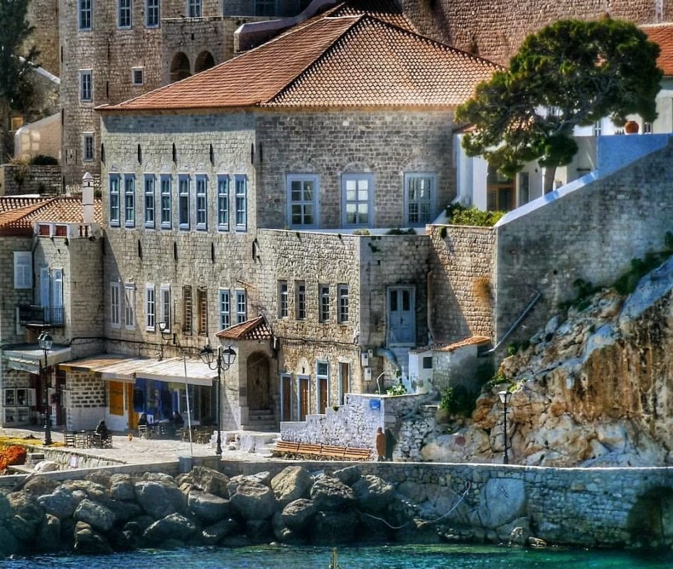 Overlooking the western side of Hydra Harbor, this mansion is a prime example of the island’s archontica, or houses of prominent families. These homes had several distinguishing features: