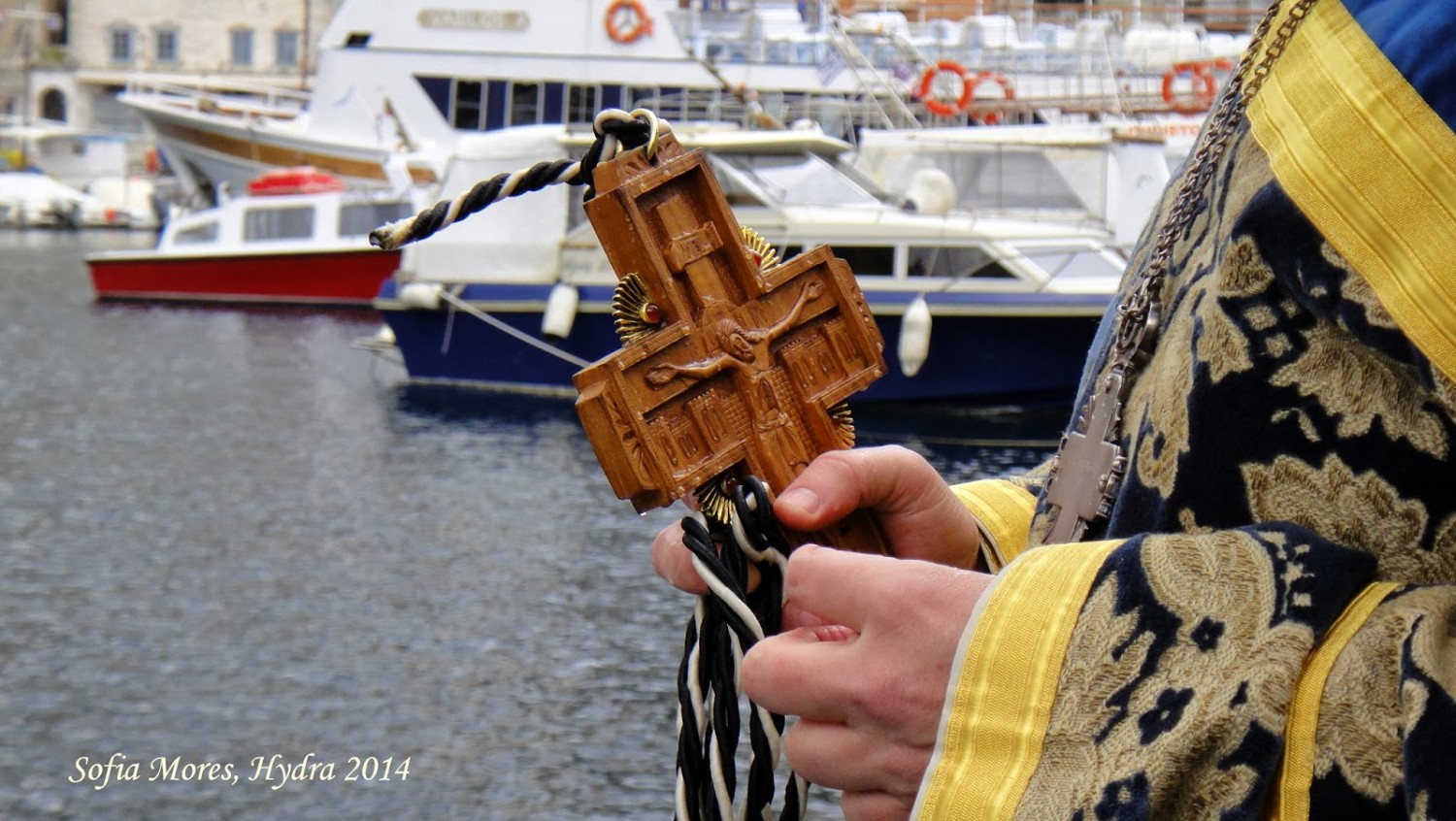 On day of the Epiphany, a great procession forms, with hymns and prayers, and travels through Hydra’s old neighborhoods(Kiafas-Gkourmadas) to Kala Pigadia, where island priests bless the two wells. At around noon, the procession passes down the town’s main street of Andrea Maiouli and ends at the northern breakwater of the harbor. The bishop tosses a cross tied with ribbon into the sea to sanctify the waters. And Hydra’s youngsters (typically male) dive in to retrieve it, and he who does wins good luck for the year. At this point everyone returns to the Church to pray for a good year and for good health.