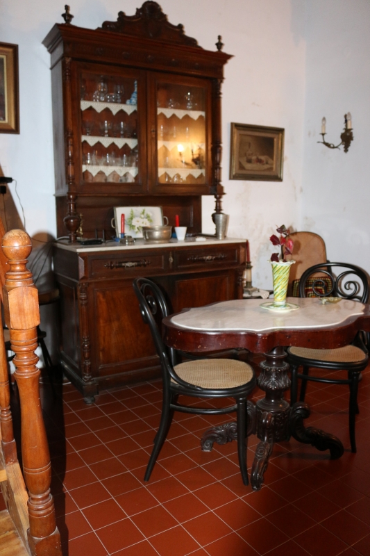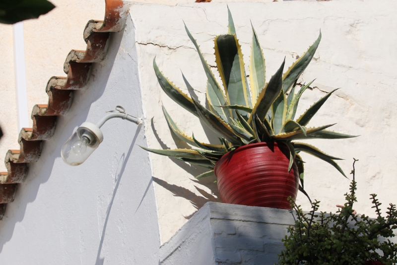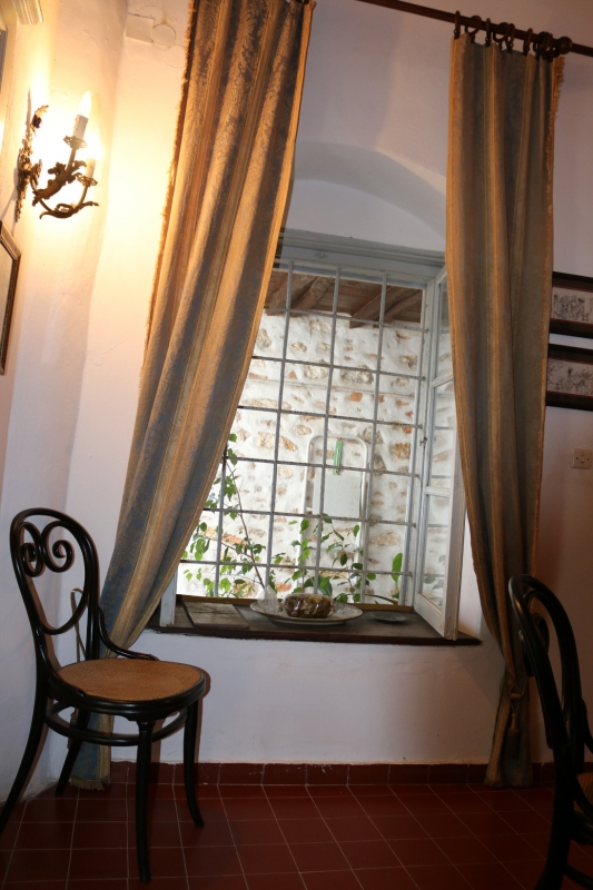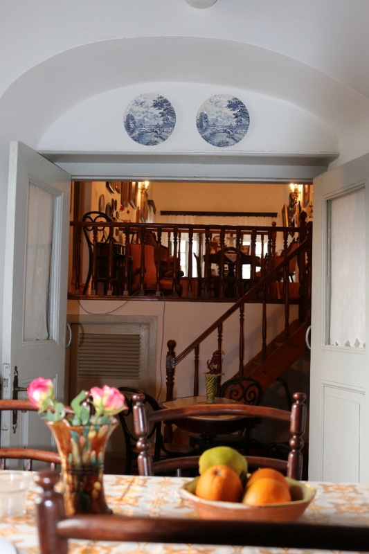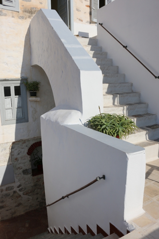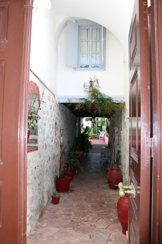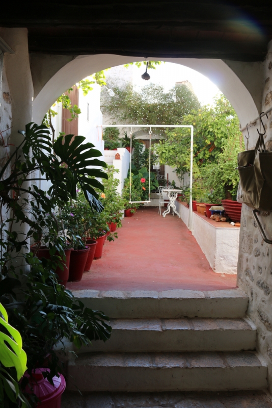 The house is steps from the port, with about 30 odd stairs to reach the house. Guests enter the property through a small courtyard, which leads back past the kitchen and sitting area into a walled garden, planted with trees and flowers.