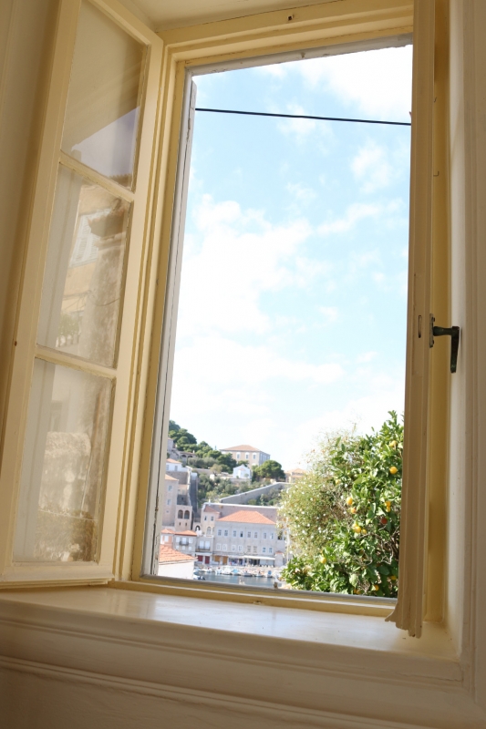 This beautifully restored, traditional Hydriot stone villa has belonged to Christina’s house for six generations. It has two floors: a first floor with a small veranda and a second floor with a big veranda, with views of the town, the port, the sea, and the Peloponese. The view of the sunset is fantastic!