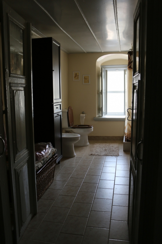 The first floor has three rooms: two bedrooms (to sleep four people) with a shared toilette/shower. The main bedroom has A/C, second bedroom a fan. These rooms share a small terrace with access to the large veranda on the second floor.
